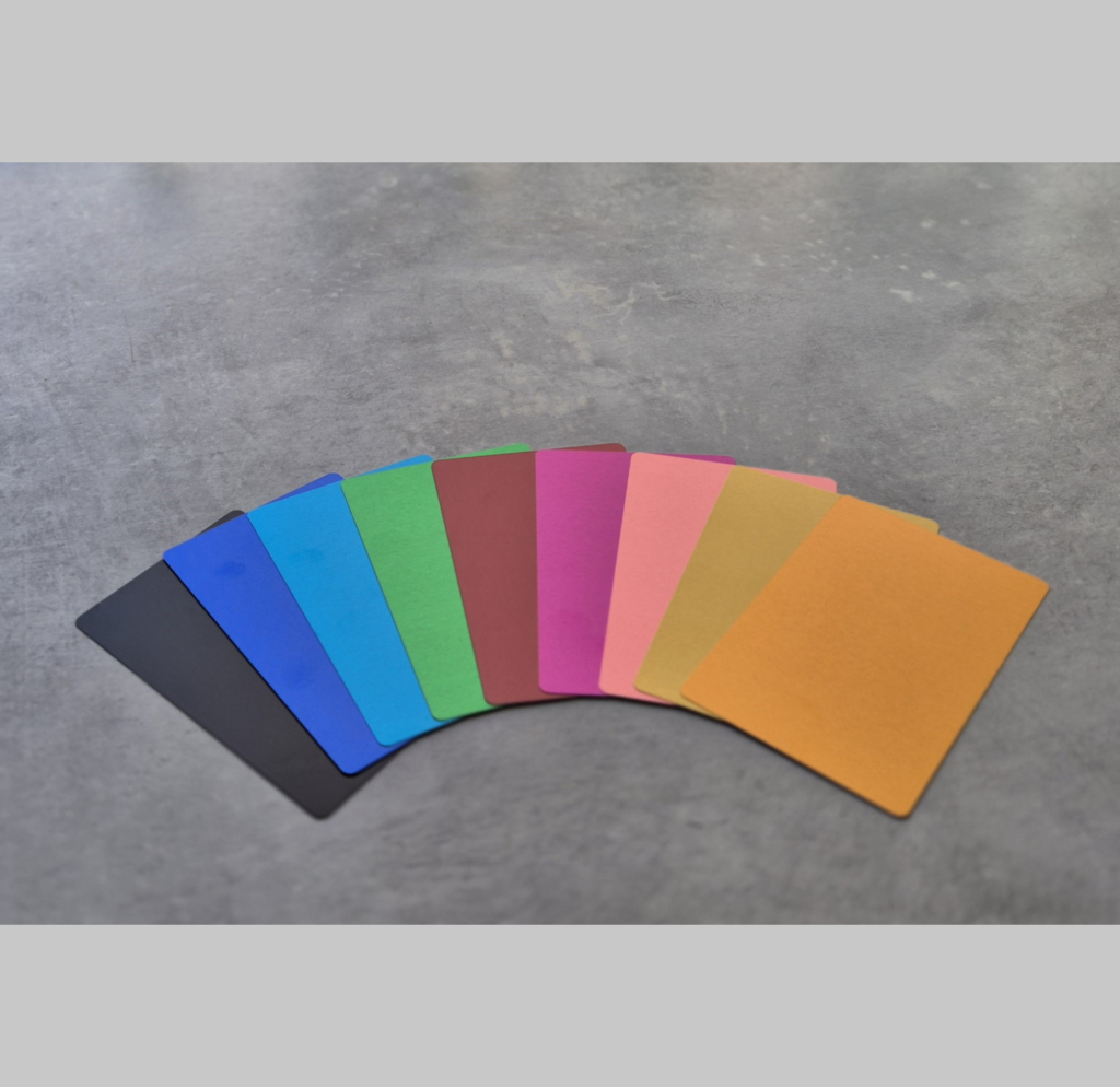 Papel premium o tarjetas flexibles de aluminio en colores.