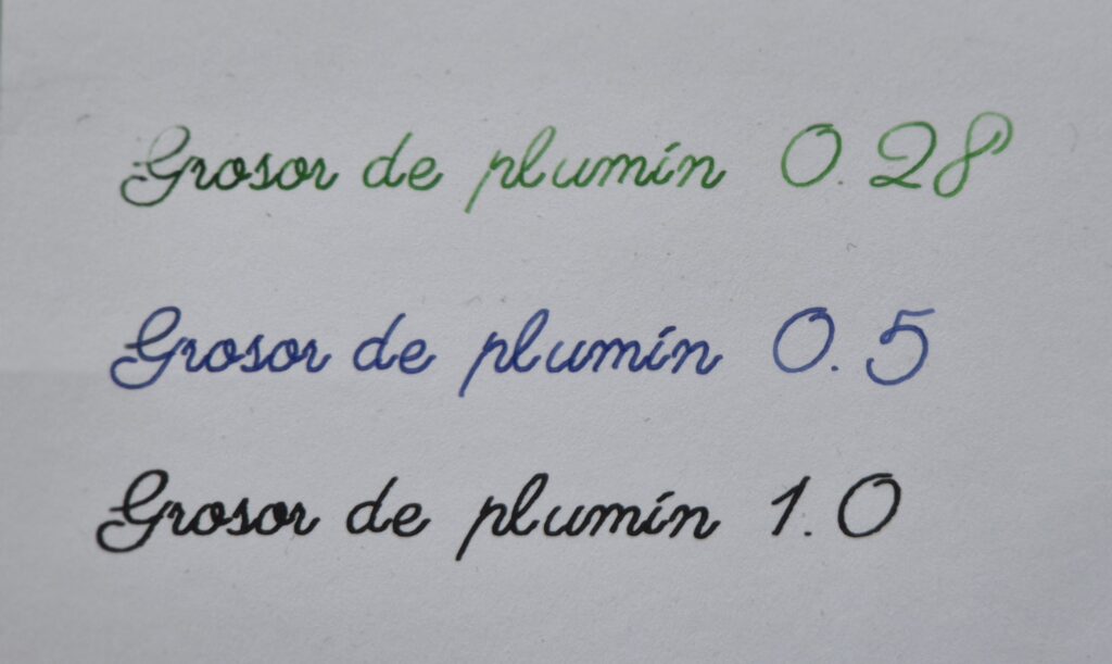 Grosor del trazo con pluma y ejemplos de color de tinta